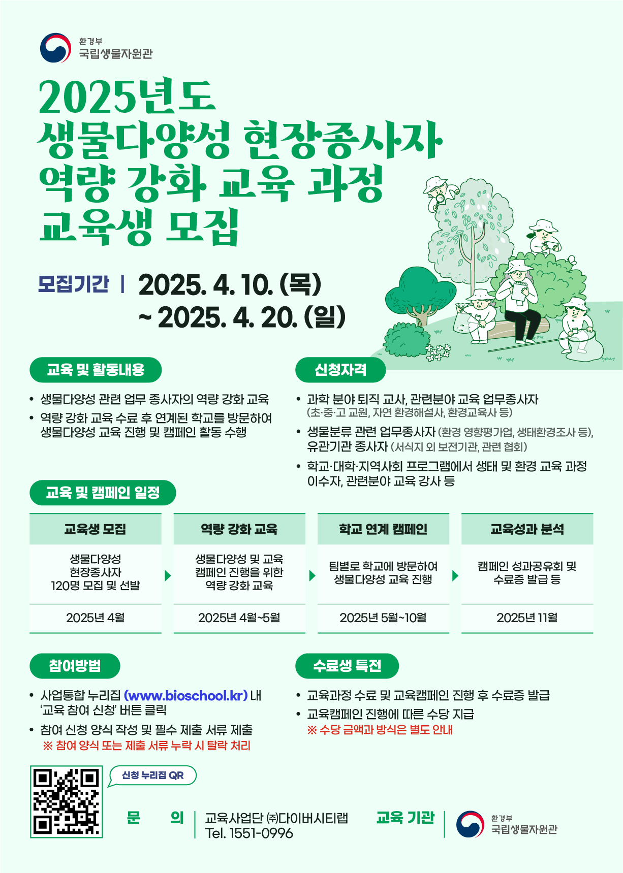2025년도 생물다양성 현장종사자 역량 강화 교육 사업 교육생 모집_포스터.png